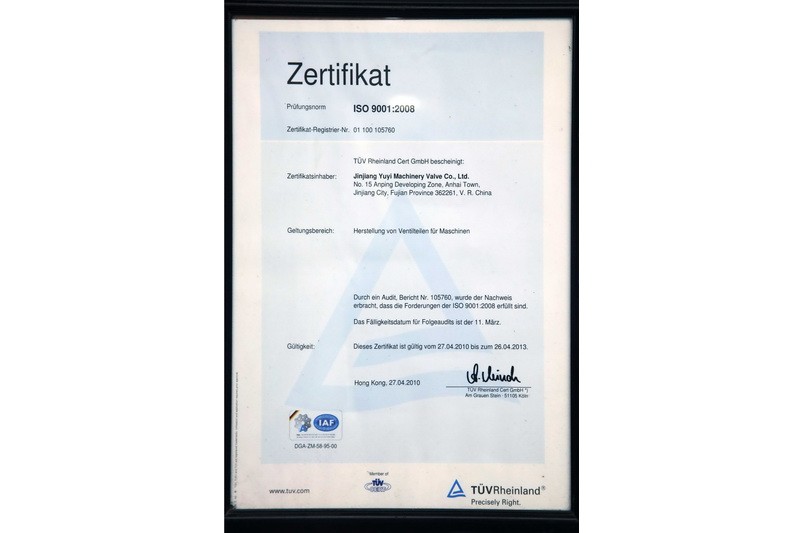 晉江煜億機(jī)械閥門有限公司,成立于1997,是一家外商獨(dú)資企業(yè),位于福建省有名的旅游城市泉州市的安海鎮(zhèn)裝備制造產(chǎn)業(yè)基地。公司建筑面積近36000平方米,擁有員工200余人,其中技術(shù)人員和管理人員20余人。公司組成包括精密鑄造車間、砂型鑄造車間、機(jī)加車間。我們從2001年起就獲得了TUV認(rèn)證機(jī)構(gòu)頒發(fā)的ISO9001的證書,從2007年起就持續(xù)獲得TUV認(rèn)證機(jī)構(gòu)頒發(fā)的PED證書。我們公司的產(chǎn)品遠(yuǎn)銷十幾個(gè)國(guó)家地區(qū),如美國(guó)、丹麥、德國(guó)、荷蘭、澳大利亞、中國(guó)(臺(tái)灣)、南洋。